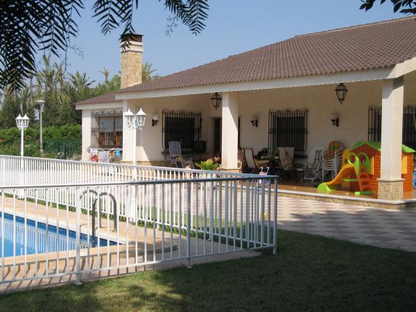Impecable chalet en venta cerca de Elche, situado en Perleta, en parcela privada de 5000m, a 11km de la playa y a 4 km del centro de Elche, con detalles que lo hacen muy confortable. La vivienda cuenta con 300m construidos, unos 248m en planta baja y otros 52m en desván. En planta baja hay salón de unos 37m(con chimenea), cocina, cinco habitaciones, cuatro baños amplios, y una zona de estar al final de pasillo. En la planta alta, a la que se accede por una bonita escalera, hay una habitación y dos baños. Está en perfecto estado, cuenta con aire acondicionado en salón, cocina y dos habitaciones, armarios empotrados, instalación de alarma, puertas blindadas, y ventanas amplias con rejas de hierro macizo, completamente amueblada. Ademas puede disfrutar con amigos y familiares de zonas de recreo, de la piscina de 10 x 5, del amplio jardín con arboles frutales(principalmente naranjos, también limoneros, almendros) de la pista de tenis, o de la barbacoa cubierta. Mejor verlo, ideal para vivir permanentemente!